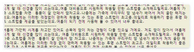 content +='여름이 되기 전에 사용해 볼 수 있어서 너무 좋네요.'